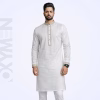 This Panjabi ensures all-day breathability and a soft, comfortable feel against the skin. The delicate classical embroidery on the band collar, placket, cuffs, and front panel adds a refined aesthetic, while the decorative buttons enhance its sophisticated appeal.